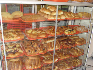 At one point we were lured into a bakery by the delicious smells coming from it. Asked the owner what he recommended, and a huge piece of sweet bread filled with soft cheese and strawberries soon found its way into our bellies. Boy was it ever good!